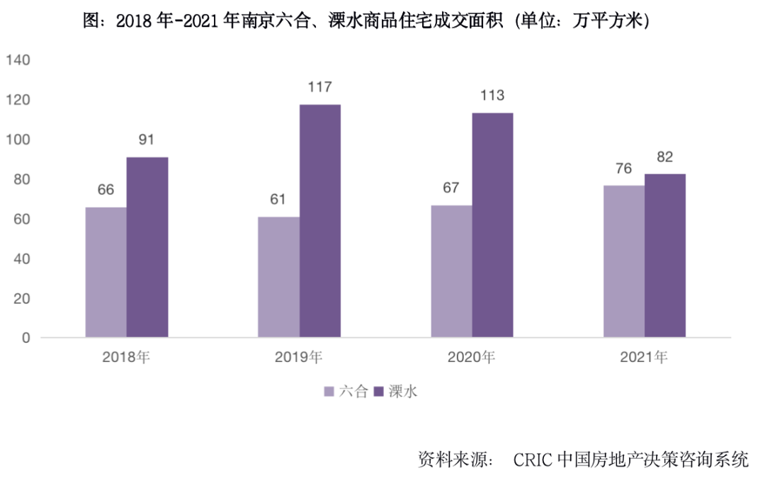 南京,相比蘇州而言本次政策更多的是試水和信號意義。2019年六合已放開大專以上學歷落戶,2021年六合和溧水落戶政策也均有放開,在實際購房操作上已不需要社保要求。從數據上來看,溧水和六合商品住宅成交分別于2019年和2021年達到規模高點,需求已提前釋放。同時本次政策并不包含購買力更好、市場較佳的江北新區覆蓋區域。因此本次放寬外地戶籍在兩區購房對后續新房成交提振余量有限。