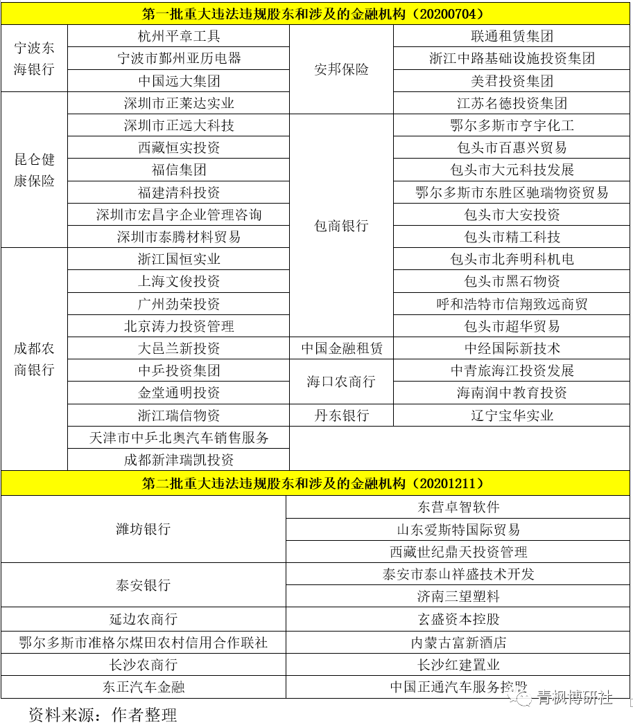 (二)第二批(20201211):9家重大違法違規股東涉及6家金融機構