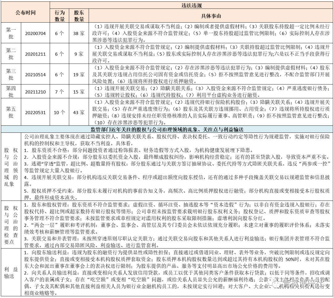 (一)2022年5月31日,銀保監會官網披露43家重大違法違規股東名單(包括28家企業股東和15位自然人股東),共涉及25家金融機構。