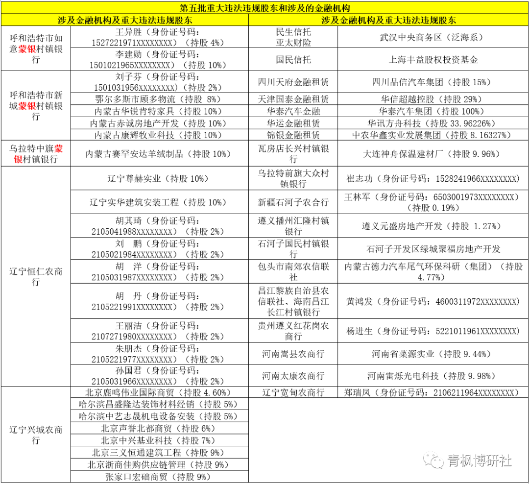 (五)第五批(20220531):43家重大違法違規股東涉及25家金融機構