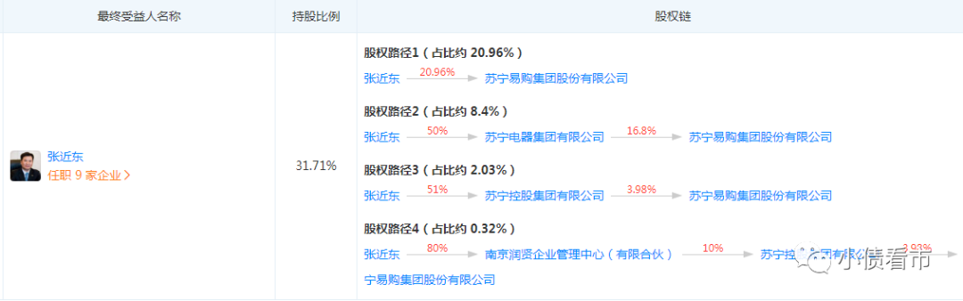 從股權結(jié)構(gòu)上看,張近東直接持有蘇寧易購20.96%股份,他還通過蘇寧集團、蘇寧控股等路徑對公司間接持股,合計持有31.71%股份,為公司控股股東和實際控制人。