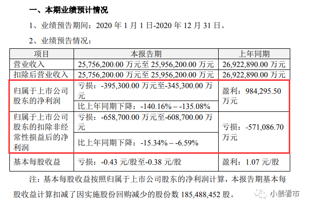 據(jù)《業(yè)績預告》顯示,2020年蘇寧易購歸屬于上市公司股東的扣非凈利潤虧損金額預計達到60.87億-65.87億元。