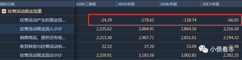 除了經(jīng)營業(yè)績欠佳,蘇寧易購的經(jīng)營獲現(xiàn)能力也在持續(xù)惡化。