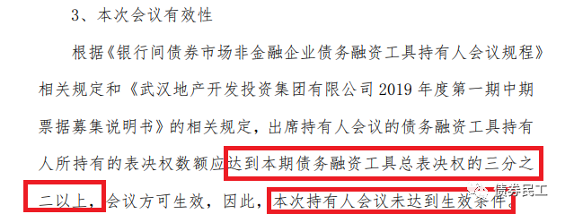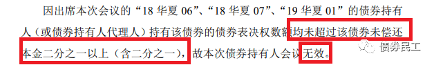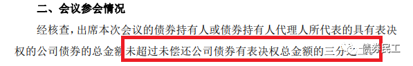 公告,“”2021年第一次持有人會議,所有持有人均未對議案進行表決,會議無效。從實踐來看,這種所有持有人均為表決的情況也極為罕見。