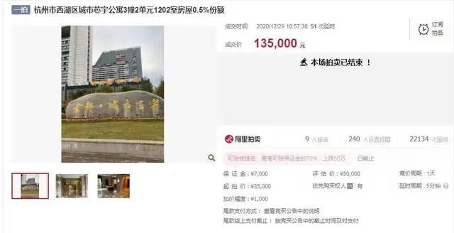 以上這些房產,有在變賣階段的,也有剛剛進入一拍即將被拍賣的,但它們與其他普通法拍房有個非常明顯的區(qū)別,那就是它們都不是擁有完成產權份額的法拍房。本期,我們就以之前的杭州市西湖0.5%份額房產為例來給大家講講: