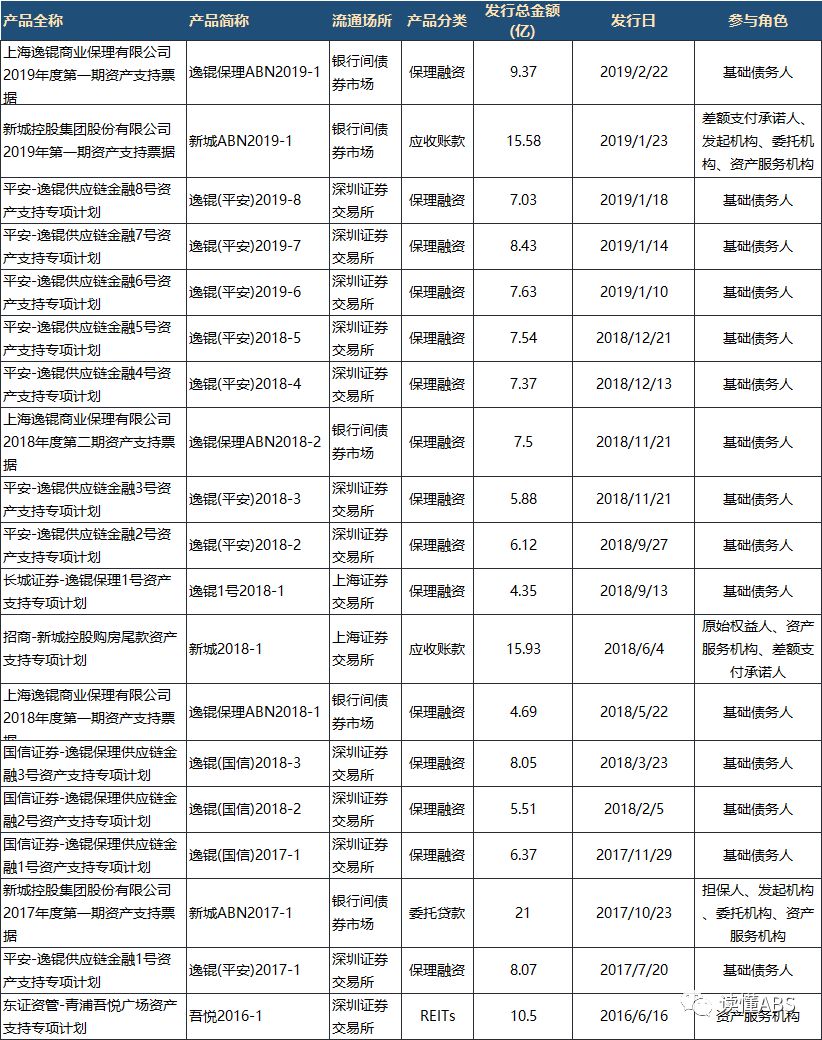 2017年4月12日,平安-逸錕供應鏈金融1號資產支持專項計劃于深交所獲批,規模10億元,由逸錕商業保理(天津)有限公司作為發起人及原始權益人,該項目于7月20日成功發行,規模8.07億元。
