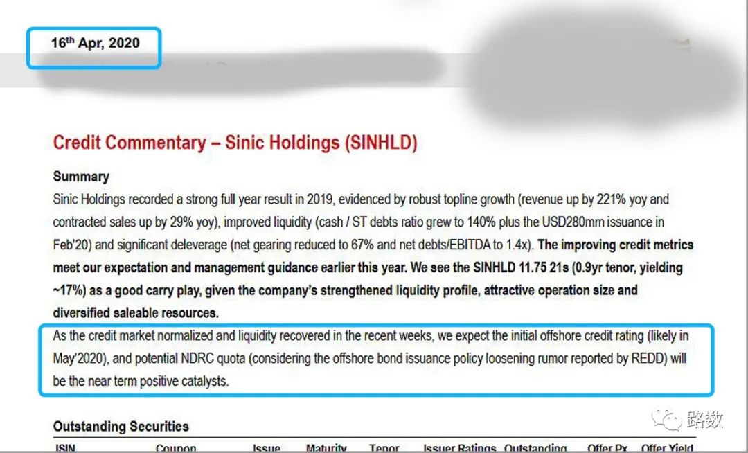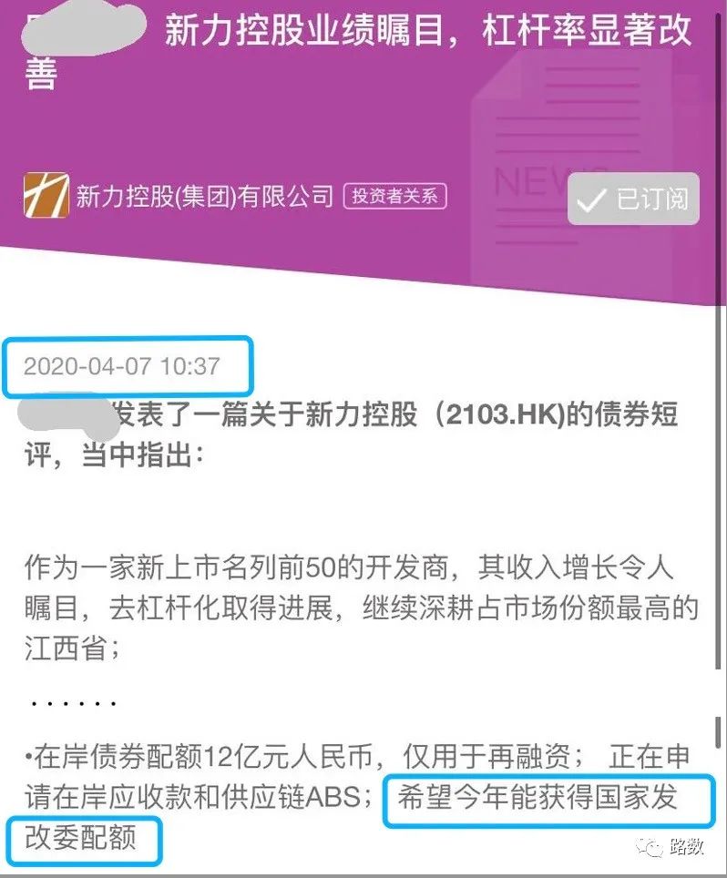 至少有3家機構(gòu)在2020年4月發(fā)布的研究報告中明確表明:當(dāng)時新力地產(chǎn)正處于申請發(fā)行外債額度中。注意,是進行時,而非完成時。▼