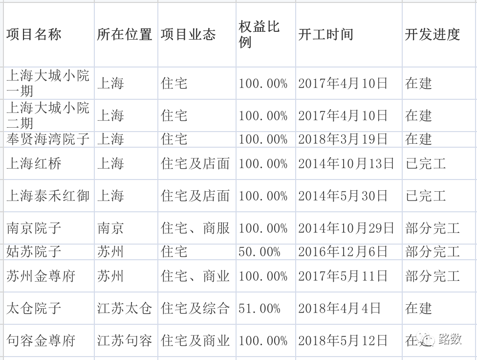 僅從開工時間、開發(fā)進度、權益占比看,泰禾在上海和江蘇的情況可以發(fā)現(xiàn):