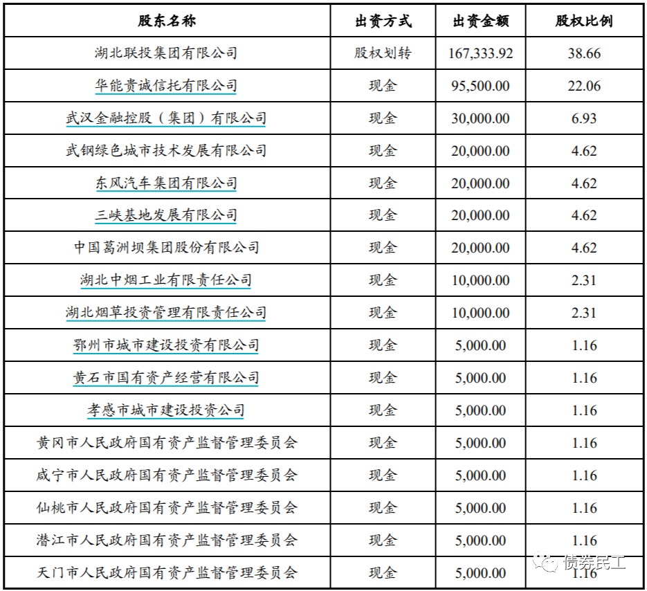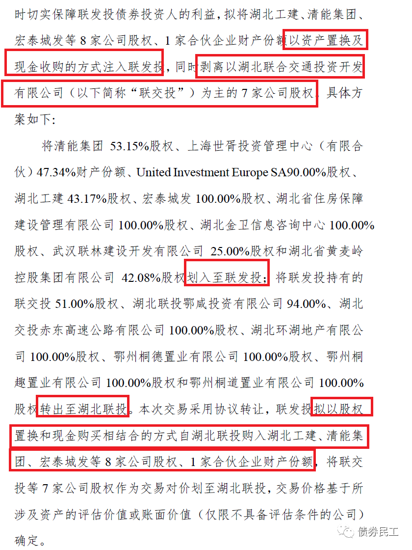 與此同時,本次資產重組中涉及的標的資產中有兩家公司為債券發行人:其中湖北清能投資發展集團有限公司主體信用等級為AA,存量債券金額為5.27億元;湖北聯合交通投資開發有限公司主體信用等級為AA+,存量債券金額為10億元。