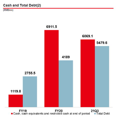 截至2021年9月30日,公司經(jīng)營性現(xiàn)金流為60.69億元,整體負(fù)債率約35.4%,保持行業(yè)低位水平。