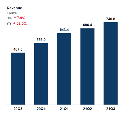 報(bào)告顯示,三季度公司實(shí)現(xiàn)主營業(yè)務(wù)收入7.41億元人民幣,同比增長59%;實(shí)現(xiàn)調(diào)整后的凈利潤達(dá)7800萬元,利潤率達(dá)10.6%;調(diào)整后的EBITDA(稅息折舊及攤銷前利潤)達(dá)3.68億元,同比增長61.57%。