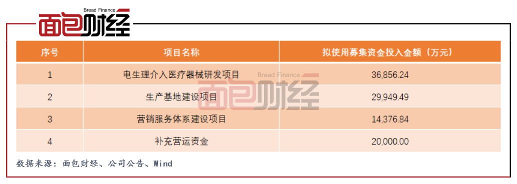 電生理此次上市計劃募集資金10.12億元,主要用于電生理介入醫療器械研發項目、生產基地建設項目、營銷服務體系建設項目以及補充營運資金。
