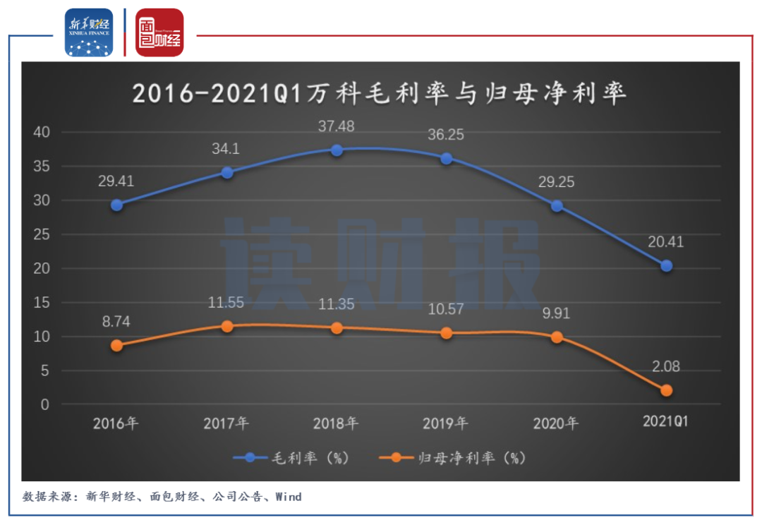 圖2:2016-2021Q1萬科毛利率與歸母凈利率