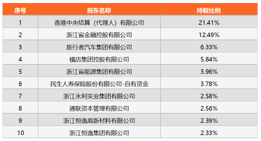 表 1:浙商銀行的十大股東結(jié)構(gòu)情況