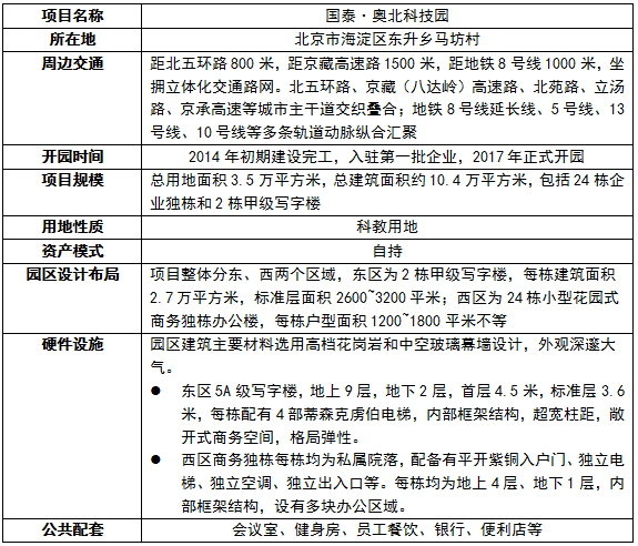 國(guó)泰·奧北科技園區(qū)基本情況表