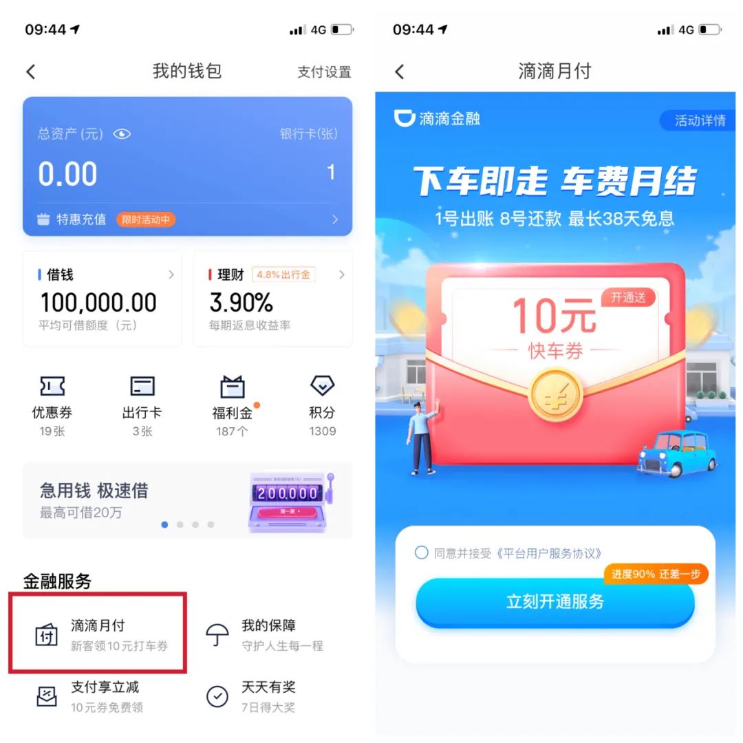 最近,滴滴上線了一款先享后付產品——「滴滴月付」。