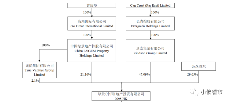 從股權(quán)結(jié)構(gòu)看,綠景中國(guó)的控股股東為景崇集團(tuán)有限公司,持股比例為47.08%,實(shí)際控制人為自然人黃康境。