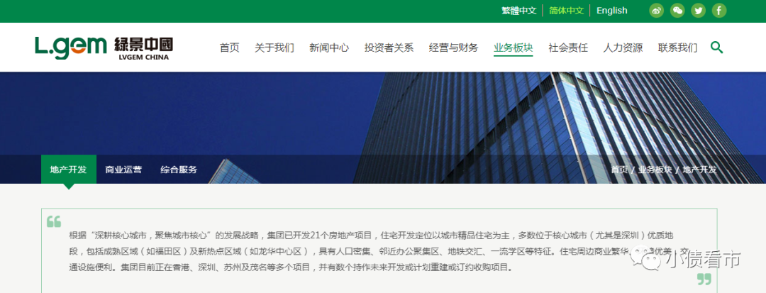 據(jù)官網(wǎng)介紹,綠景中國(guó)成立于1995年,是深圳公認(rèn)知名的綜合性房地產(chǎn)開發(fā)及商業(yè)物業(yè)運(yùn)營(yíng)商。