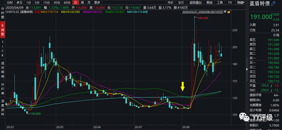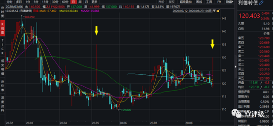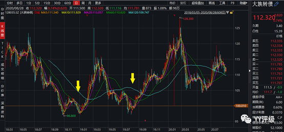 案例:較典型的案例是大族轉(zhuǎn)債,公司是國內(nèi)激光設(shè)備的頭部企業(yè),屬于電子板塊,彈性足夠大,雖然轉(zhuǎn)股價值長期在100元以下較深的位置,但2020年初轉(zhuǎn)債仍能漲到120以上。