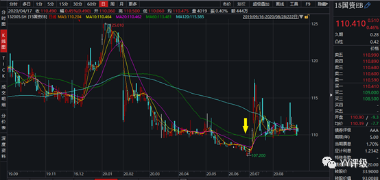 15國資EB今年6月底成交在107.5左右,純債溢價率在0附近,可以說是鐵底,而7月初銀行保險的估值修復(fù)迅速為其帶來收益。