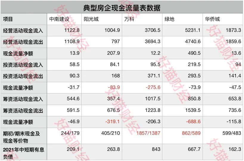 中南建設(shè)的經(jīng)營現(xiàn)金流入也是創(chuàng)歷史新高,但借款和償債之間存在117億元的缺口,導(dǎo)致了最終現(xiàn)金下降60多億元。