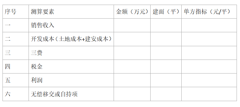 其實,說穿了,測算不就那三樣嘛:成本、收入、利潤。其中成本包含土地成本、建安成本、三費、稅金。