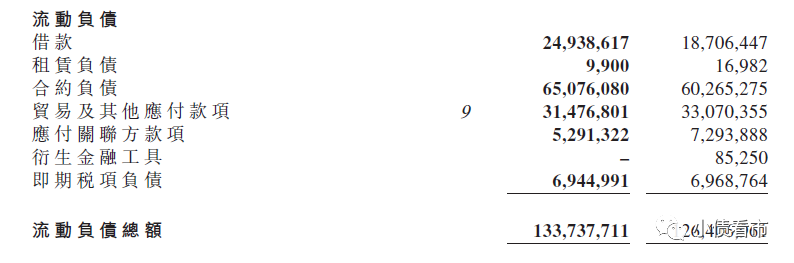 除此之外,融信中國還有488.52億非流動負債,主要為長期借貸,其長期有息債務有469.21億元。