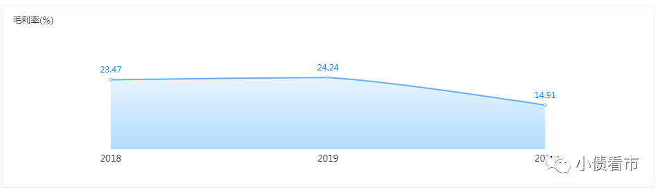 相較于同行,融信中國的銷售毛利率和凈利率一直比較低,2020年毛利率更是由24.3%驟降至14.91%,幾近腰斬。