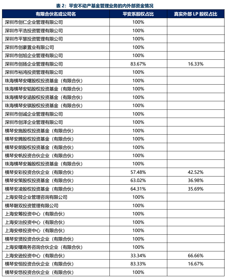 GP+LP模式的層層嵌套下,大多數LP為平安系公司或其關聯公司(包括深圳市陸虹投資管理有限公司)。在打造市場化資產管理公司的口號聲下,此舉形同粉絲打榜買熱搜。不過,由于LP資金多為自家人注資,從另一角度亦可視作杠桿度較低,風險較低。