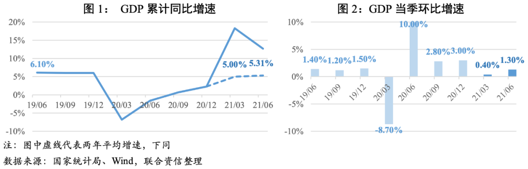 ·2021年上半年,我國國內生產總值53.22萬億元,同比增長12.70%,兩年平均增長5.31%,低于2019年上半年水平。三大需求中消費拉動弱于疫情前水平是GDP增速的主要制約。