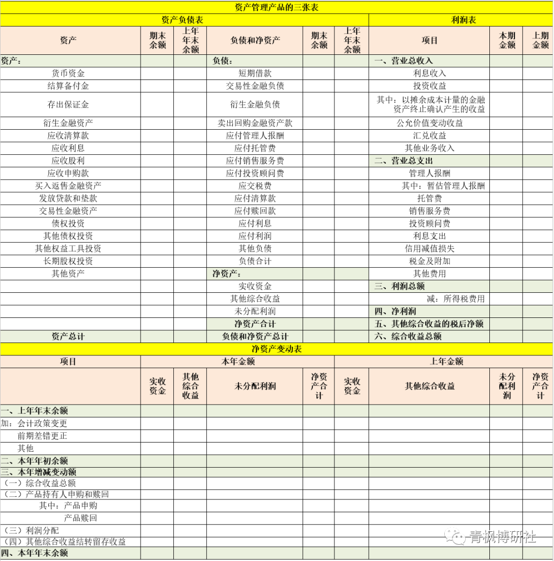 (4)豁免現金流量表編制要求,也即資管產品僅需編制《資產負債表》、《利潤表》以及《凈資產變動表》三類。