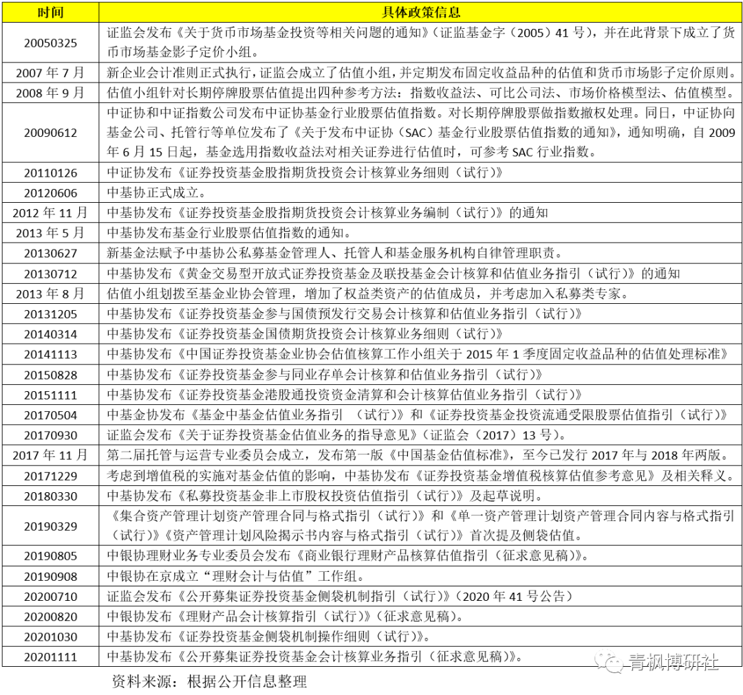 2、2012年中基協成立后,其嘗試解決了多種投資品種的估值方法,在基金估值的問題上可以說動作頻繁。同時中基協還自2017年開始每年發布《中國基金估值標準》,以期作為行業統一標準指引。