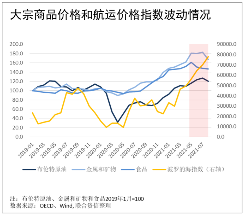 1.2021年以來,隨著全球主要經濟體的經濟復蘇以及需求的強勢反彈,大宗商品和海運價格均呈現大幅上揚的趨勢,反映航運價格變動的波羅的海指數較年初漲幅超過130%;在高運價、交付壓力增大和集裝箱前景不明朗的情況下,航運公司主動削減運力,進一步助推貨物運輸成本上揚。