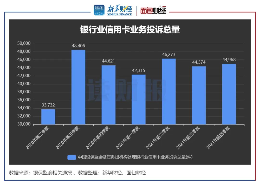中國(guó)銀保監(jiān)會(huì)消費(fèi)者權(quán)益保護(hù)局公布的數(shù)據(jù)顯示,2021年銀保監(jiān)累計(jì)處理信用卡業(yè)務(wù)投訴超17萬(wàn)件。其中,2021年第四季度處理信用卡業(yè)務(wù)消費(fèi)投訴44968件,較第三季度環(huán)比上升1.3%。