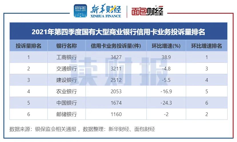2021年第四季度,建設(shè)銀行和農(nóng)業(yè)銀行的信用卡業(yè)務(wù)投訴量同比顯著下降,降幅分別達(dá)到35.24%和23.4%。