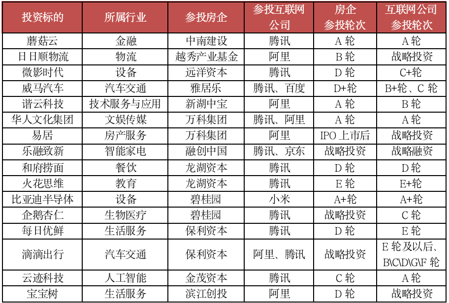 在投資標的選擇上,已有細分產業的“獨角獸”獲得了房企與互聯網公司共同參投,在房企與互聯網巨頭雙重“大資本”支持下,被投企業未來發展前景向好。
