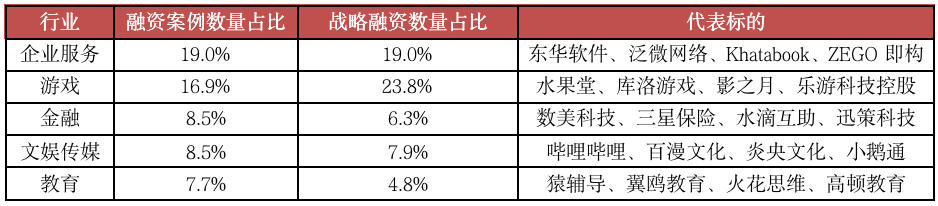 圖:騰訊2020年投資數量TOP5的行業具體信息