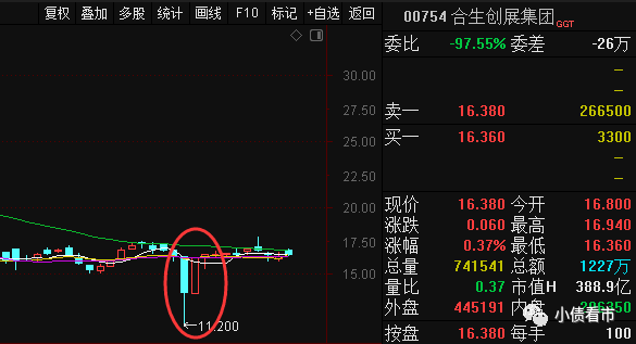 1月28日,合生創展股價低開后一路下探,盤中一度跌超30%,最低下探至11.2港元,最終收盤于11.54港元,跌幅為17.14%。