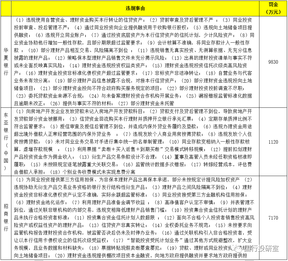 4、持續三年開展全國性房地產專項檢查,如2021年5月21日(處罰日期為2021年5月17日)銀保監會公布對5家銀行開出的合計3.66億元罰單(主要違規原因便是這些銀行違規開展房地產融資業務),這5家銀行分別為華夏銀行(罰款9830萬元)、渤海銀行(9720萬元)、中國銀行(8761.355萬元)、招商銀行(7170萬元)、東亞銀行(1120萬元)。