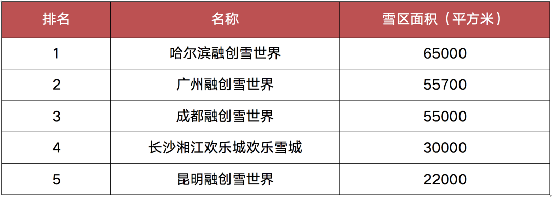 按雪區(qū)面積大小排名,全球前十位的室內(nèi)滑雪場中,中國已經(jīng)占據(jù)了半數(shù)。同時,雪區(qū)面積排名前三的室內(nèi)滑雪場全部在中國,分別為哈爾濱融創(chuàng)雪世界、廣州融創(chuàng)雪世界和成都融創(chuàng)雪世界。