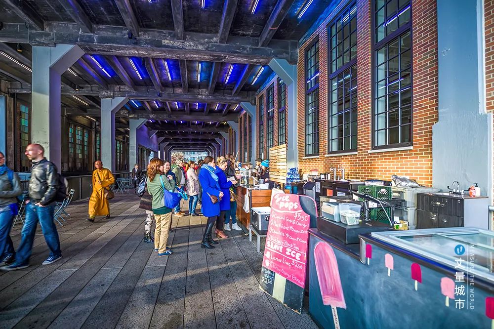 其次,將高線橋下的灰色空間,轉(zhuǎn)換為小商業(yè)、文化空間,增加收入來源。如高線公園酒店下部的灰色空間,更新后成為風(fēng)格獨特的時尚餐飲區(qū)。