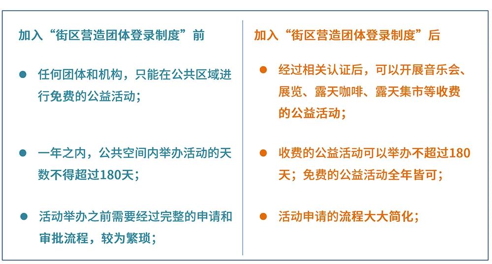 ▼ 加入街區(qū)營造團體登錄制度的前后對比