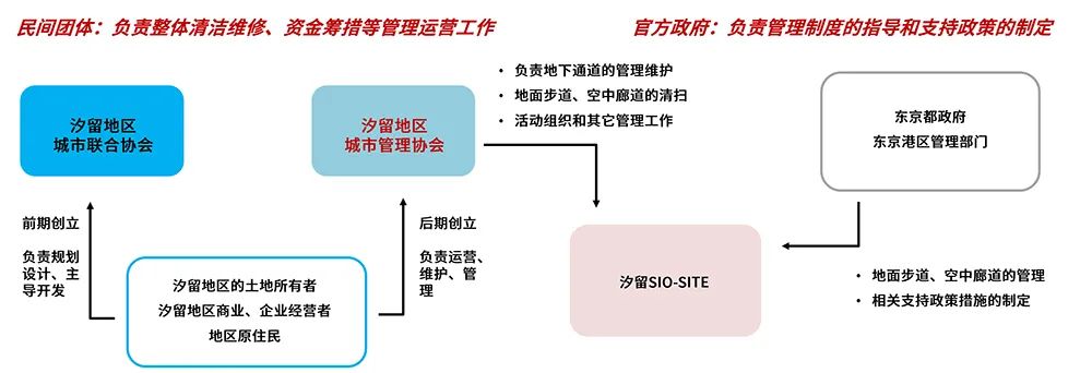 公私聯(lián)合,統(tǒng)一方向:汐留SIO-SITE所屬的東京港區(qū)管理部門,在開發(fā)前期,以「輕參與重引導(dǎo)」的方式參與其中。