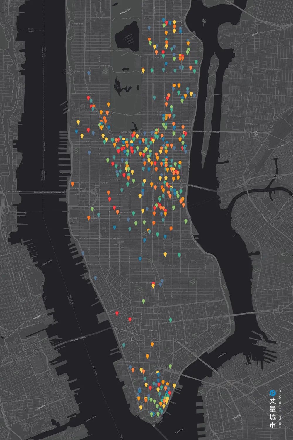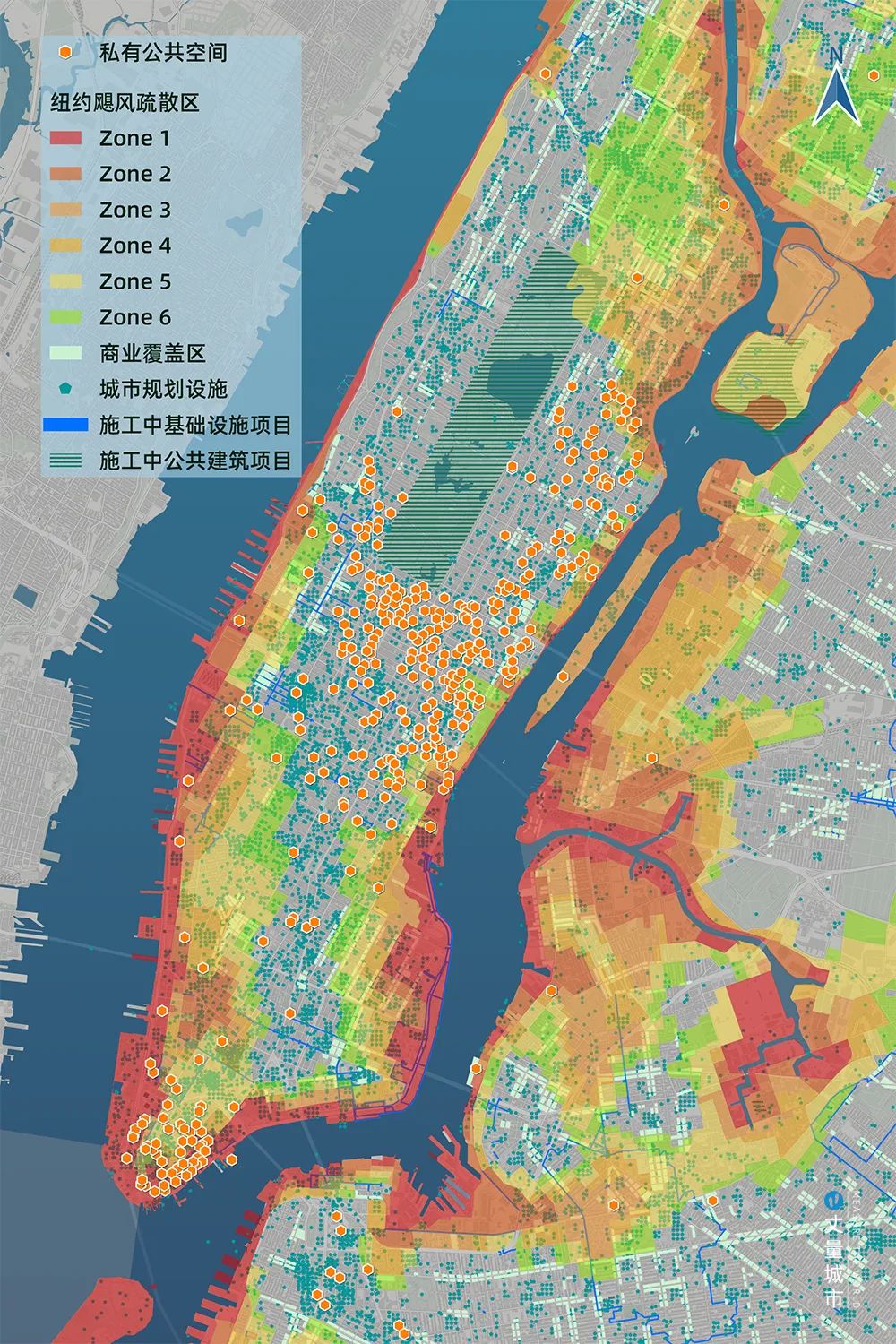 ▼ 紐約中心城區(qū)小型公共空間分布示意