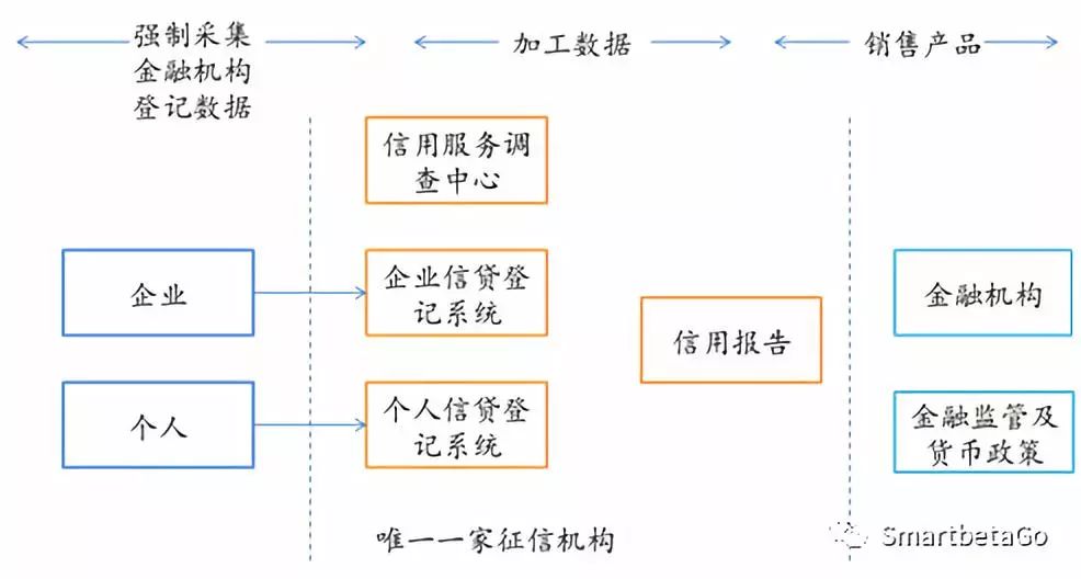 中國人民銀行征信中心(以下簡稱“央行征信中心”)(《征信業管理條例》(2013)):征信業務,指對企業、事業單位等組織的信用信息和個人的信用信息進行采集、整理、保存、加工,并向信息使用者提供的活動。