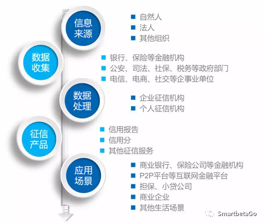 數據生產者:自然人、法人和其他組織在日常生活和經營中,在金融機構、政府部門和其他企事業單位中產生了大量與信用相關的數據和信息。數據公司則對這類數據進行采集或初步挖掘,這類公司可能會獲取特殊的數據源,例如法院、公安數據等。