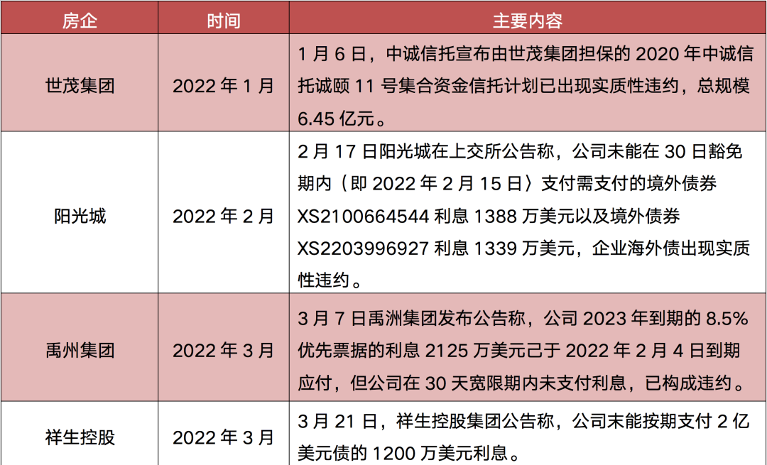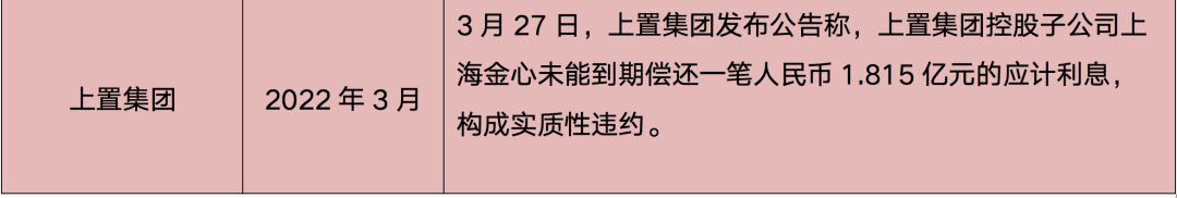 表:2022年部分房企債務違約情況