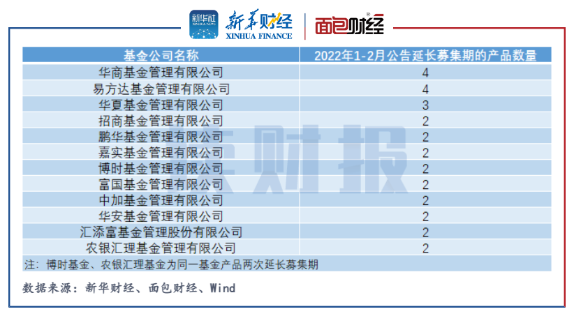 今年前兩月已有5只基金發行失敗 易方達、華夏領銜延長募集期基金數量榜