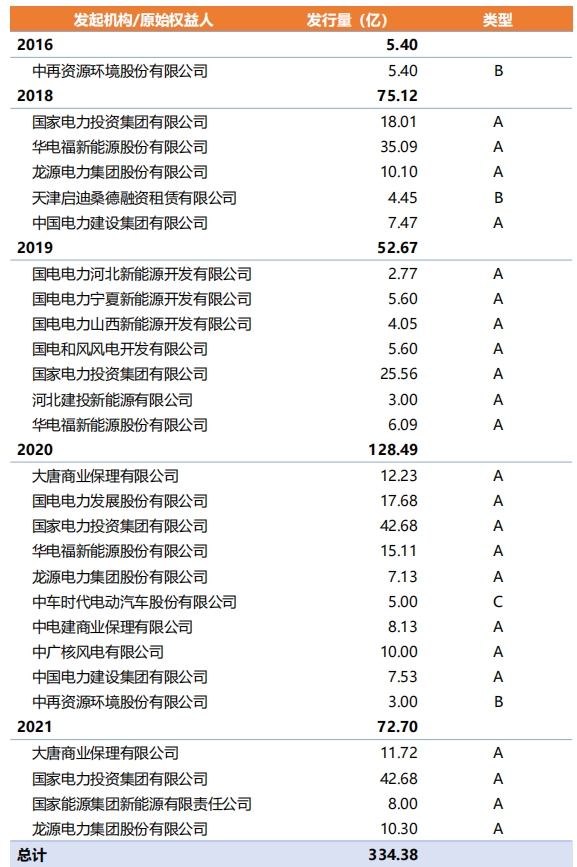 從發行數據看,基礎資產以可再生能源電價附加補貼為主,發行金額316.53億元,占比94.66%;發起機構/原始權益人以央企為主,其中五大電力集團發行280.40億元,占比83.86%。