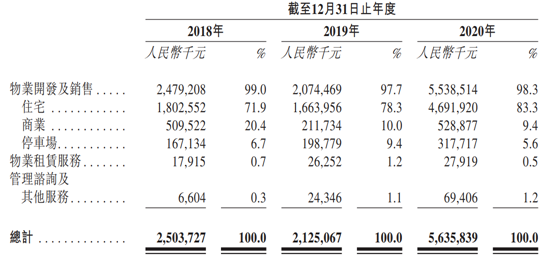 目前,物業(yè)開(kāi)發(fā)及銷(xiāo)售仍是中億基業(yè)的主營(yíng)業(yè)務(wù),占比基本維持在啊99%左右,其中住宅物業(yè)又是大頭,2018-2020年分別占其營(yíng)收的71.9%、78.3%、83.3%,有越來(lái)越集中化的趨勢(shì)。